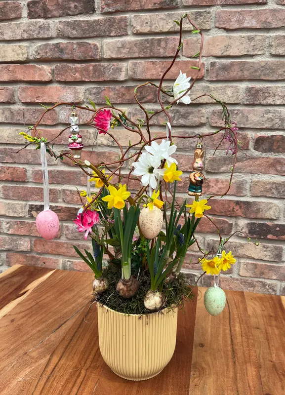 Speciaal voor alle creatieve kids hebben we een superleuke paasworkshop waar we dit vrolijke lentestuk in een gezellige gele pot gaan maken! Tijdens deze activiteit gaan de kinderen lekker aan de slag met voorjaarsbolletjes, kronkeltakken en kleurrijke paasversiering om hun eigen feestelijke paasboompje te knutselen.