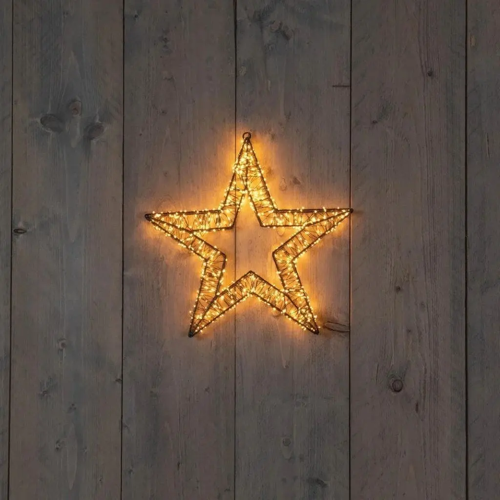 Breng sfeer in huis of tuin met de Anna’s Collection kerstster zwart 3D met LED-verlichting. Deze metalen ster van 36 x 3 cm is voorzien van 800 extra warme LED-lampjes met een subtiel flitseffect, waardoor hij direct opvalt zonder te fel te zijn. Het zwarte metalen frame geeft de ster een moderne en strakke uitstraling die goed past bij verschillende kerststijlen. Dankzij de IP44-adapter is de verlichting geschikt voor binnen én buiten, ideaal voor aan de gevel, voor het raam of in de woonkamer. De ster werkt op netstroom en verspreidt een warme gloed die zorgt voor een gezellige kerstsfeer. Door het lichte gewicht hang je hem eenvoudig op aan een muur, raam of haak. Combineer de kerstster met andere verlichting of natuurlijke decoraties voor een sfeervol geheel. Een mooie blikvanger die je elk jaar opnieuw kunt gebruiken tijdens de feestdagen.