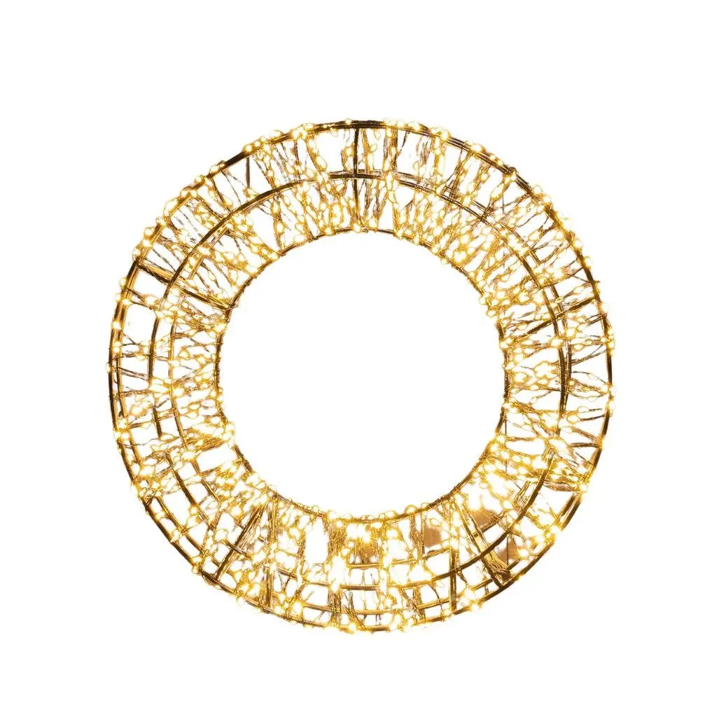 Deze verlichte krans met een diameter van 36 cm en een diepte van 8 cm is een opvallende kerstdecoratie. Uitgerust met maar liefst 1200 LED-lampjes, verspreidt hij een klassiek warm licht, perfect om een feestelijke sfeer te creëren. De krans is voorzien van een IP44-classificatie, wat betekent dat hij geschikt is voor zowel binnen- als buitengebruik. Met de ingebouwde timer en dimmer kun je de verlichting eenvoudig naar wens aanpassen. Dankzij de metalen constructie is de krans stevig en duurzaam. Een ideale keuze om je deur, raam of muur tijdens de feestdagen te verlichten.