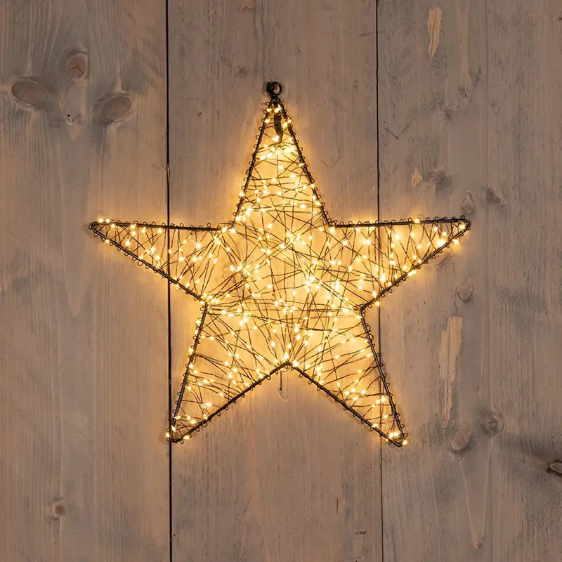 De Anna's Collection kerstster zwart met verlichting knipperfunctie D 37 H 5 cm is een stijlvolle en veelzijdige kerstdecoratie die zowel binnen als buiten voor een warme kerstsfeer zorgt. Deze elegante metalen ster met een doorsnede van 37 centimeter is voorzien van talrijke LED-lampjes die een extra warm licht verspreiden. Dankzij de knipperfunctie, dimmer met vier standen en handige timerfunctie bepaal je zelf de perfecte sfeer voor jouw feestdagen. Of je deze kerstversiering nu ophangt in de tuin, aan de gevel of in de woonkamer, de zwarte ster met verlichting trekt overal de aandacht en zorgt voor een eigentijdse kerstuitstraling.