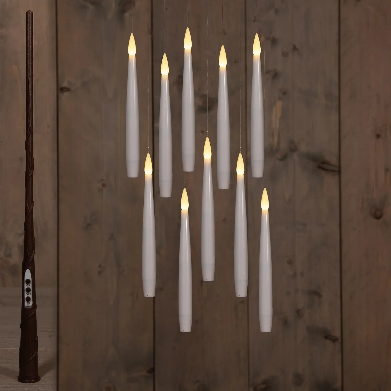 Anna's Collection zwevende kaarsen hebben een realistische vlammen, als een echte kaars. De toverstaf afstandsbediening geeft plezier en fantasie. Met een druk op de knop kunt u de verlichting bedienen, tevens beschikt het over een timerfunctie. U kunt ze met een touw aan het plafond bevestigen waardoor het zwevende effect ontstaat. Werkt op batterijen, is veilig in gebruik omdat er geen brandgevaar is. Al met al een voegt dit een extra en magische sfeer toe aan uw interieur!