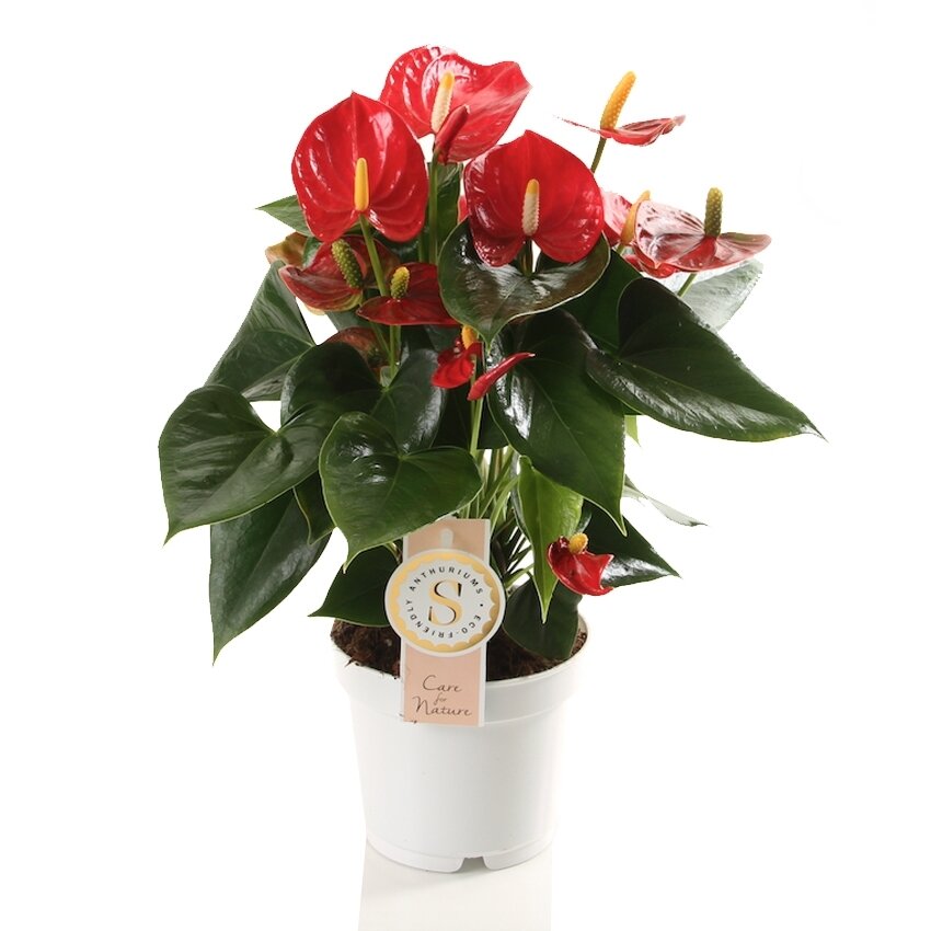 De Anthurium verbruikt niet veel water, maar vindt het wel fijn om in vochtige grond te staan. In de winter is het niet erg als de grond zo nu en dan een beetje uitdroogt. Een teveel aan water kan leiden tot bladeren met bruine vlekken.