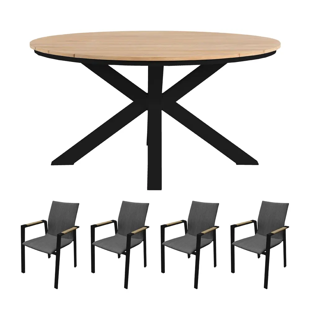 Verander je buitenruimte met de Royal Seasons Atlanta eettafel - 150 cm. Deze prachtige eettafel is ontworpen om je tuin, balkon of terras te verrijken en biedt niet alleen een gezellige plek om te dineren, maar voegt ook stijl toe aan je buitenleven. Met afmetingen Ø 150 x H 76 cm is deze tafel perfect voor intieme diners en ontspannen momenten in de buitenlucht.
