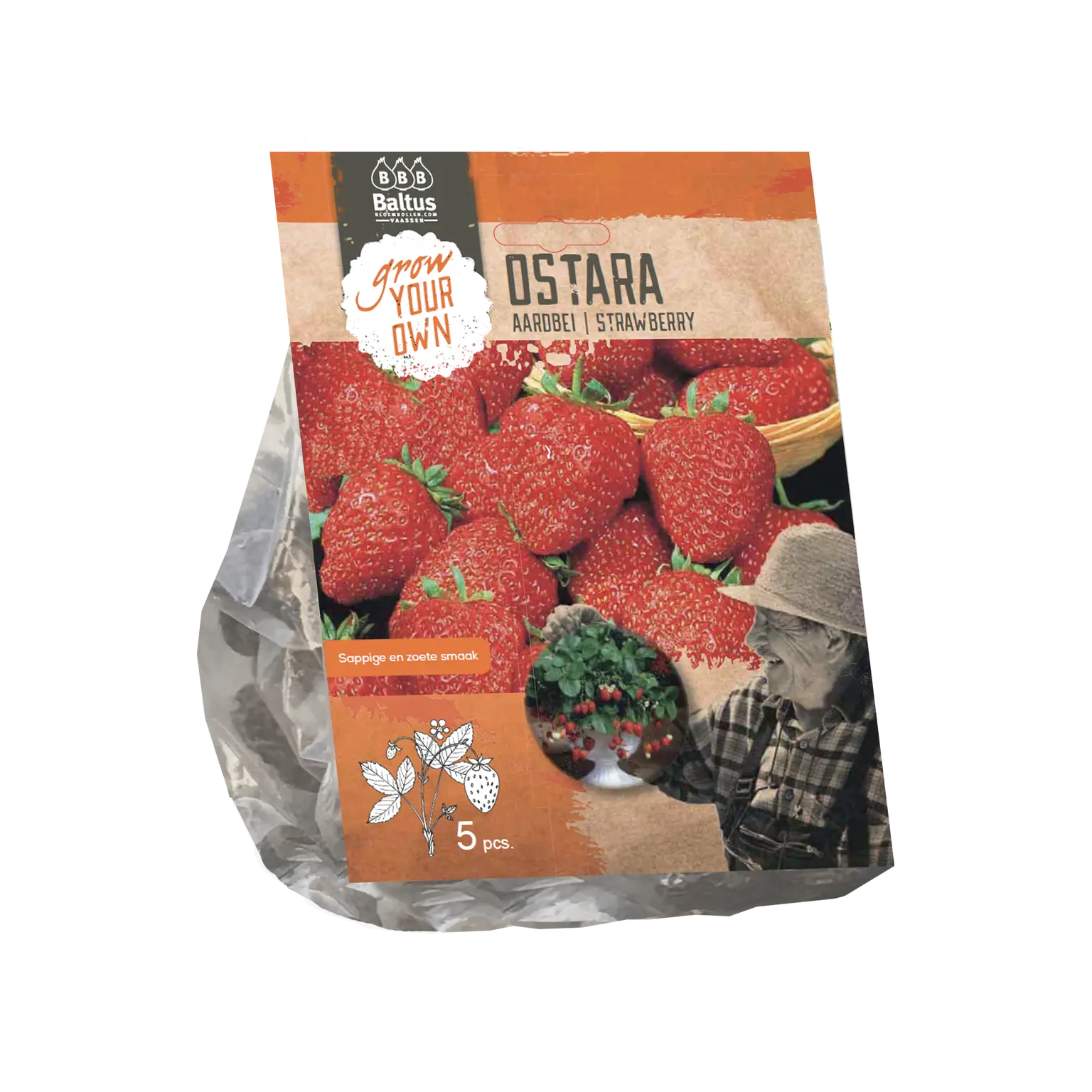 De Ostara aardbei is n van de bekendste aardbeirassen. De Ostara is weinig gevoelig voor ziektes en geeft het hele seizoen door vruchten. De aardbei heeft een sappige en zoete smaak.