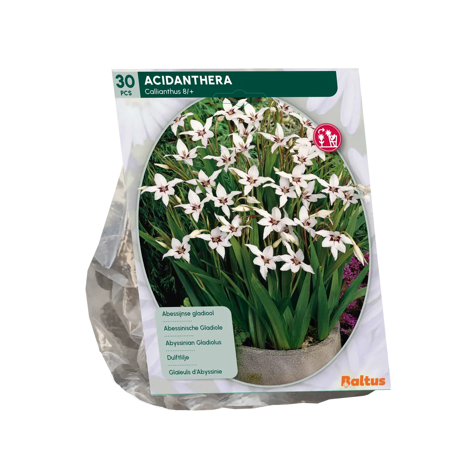 Prachtige geurende snijbloem voor verwildering. Bij voorkeur planten op een zonnig plekje.Ook wel de abesijnse gladiool genoemd.