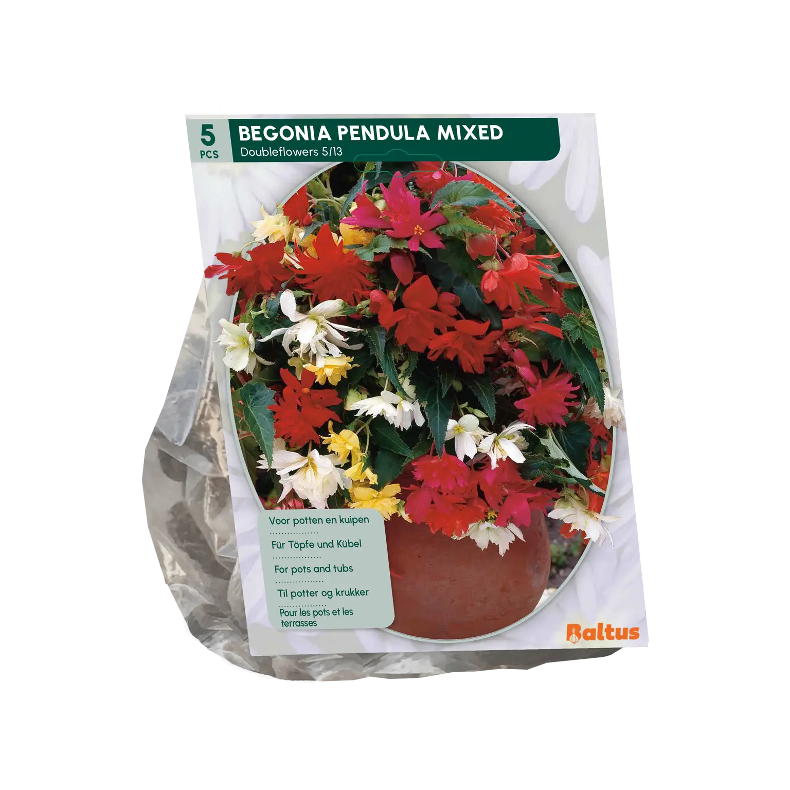 Wordt ook wel knolbegonia genoemd. Bloeit non stop de hele zomer bloemen! Ook geschikt voor potten en kuipen op het terras.
