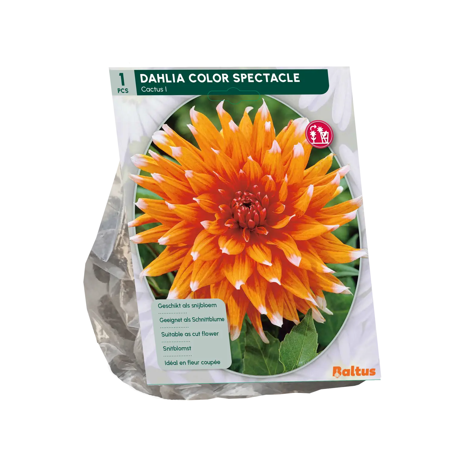 Prachtig bloeiende Dahlia die de hele zomer door kleur aan de tuin geeft. Door haar bijzondere kleur een ware eye-catcher voor de tuin! De Dahlia is zowel geschikt voor de volle grond als in potten en kuipen op het terras of balkon. Niet winterhard, dus plant de Dahlia pas nadat de kans op vorst geweken is.