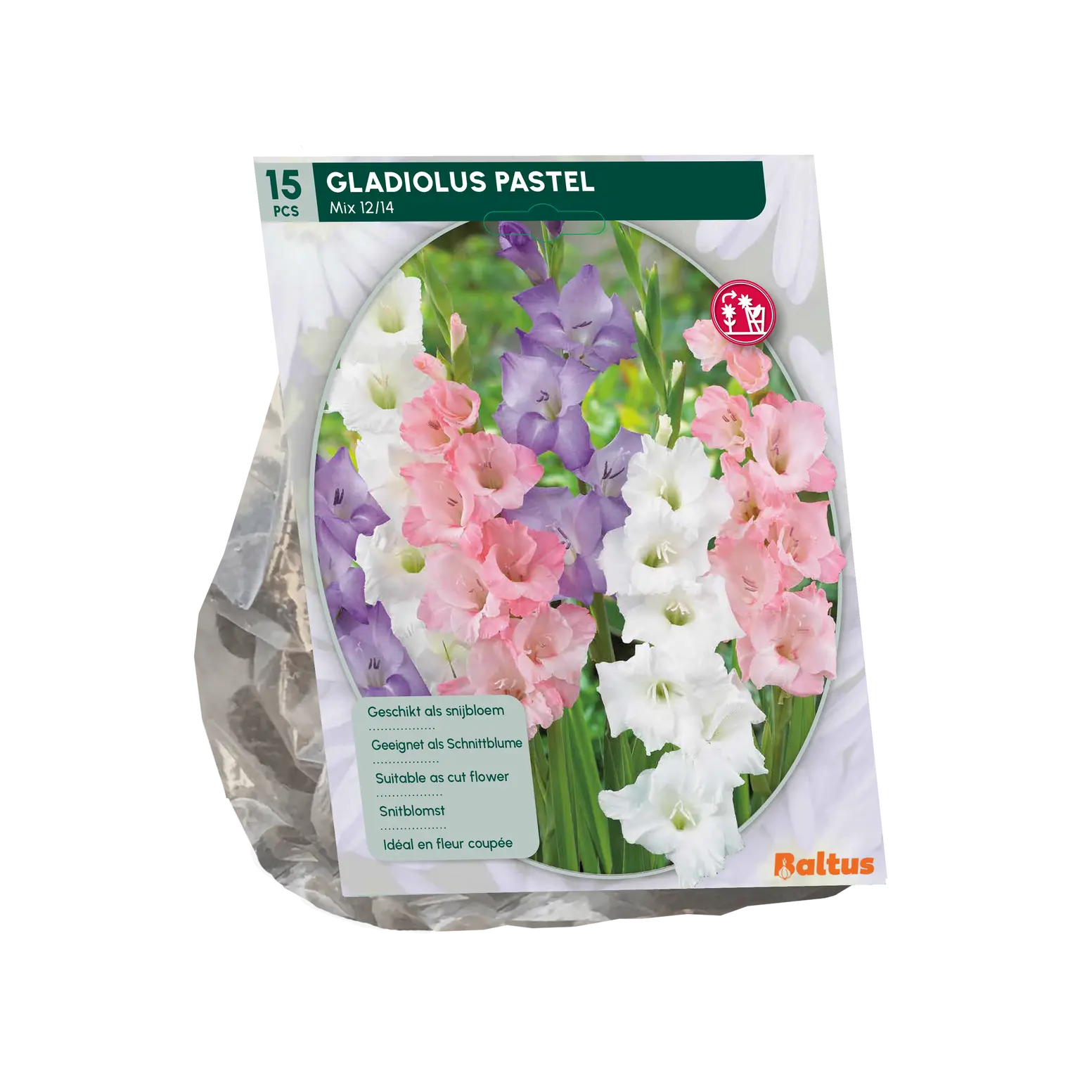 Prachtige mix van grootbloemige pastelkleurige Gladiolen. Is goed te combineren met andere kleuren! Deze Gladiolen zijn erg geschikt als snijbloem.