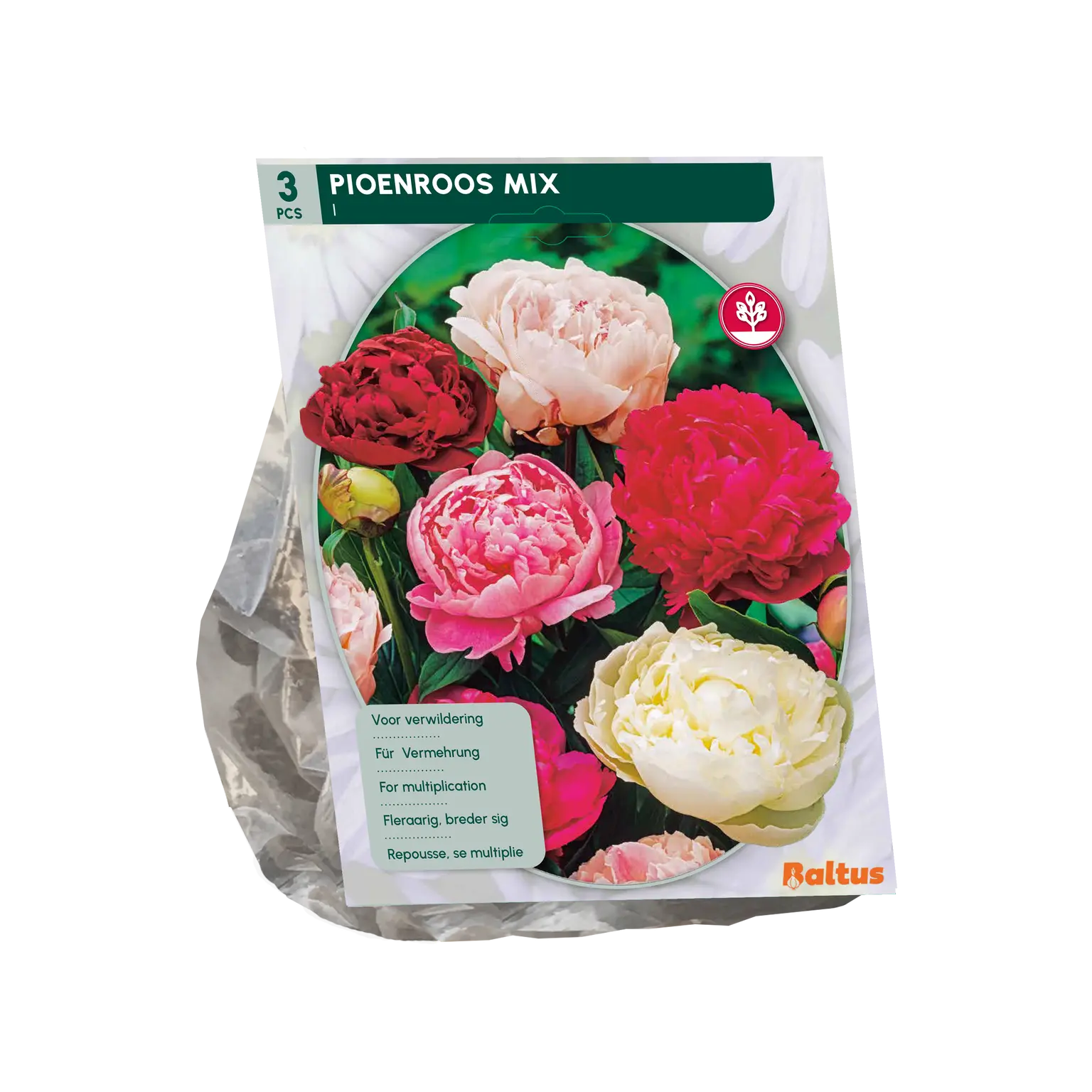 Hoe langer hij staat, des te rijker gaat de pioenroos bloeien. Extra grote, volle bloemen.