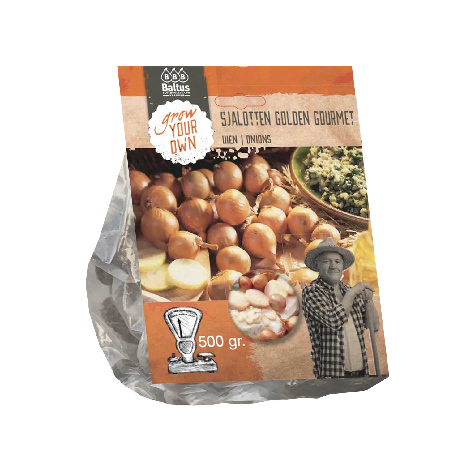 De Golden Gourmet sjalot is een verbeterde selectie van de bekende gele sjalot. De Golden Gourmet geeft een hogere opbrengst en is langer houdbaar (mits droog en koel bewaard) dan de gele sjalot.