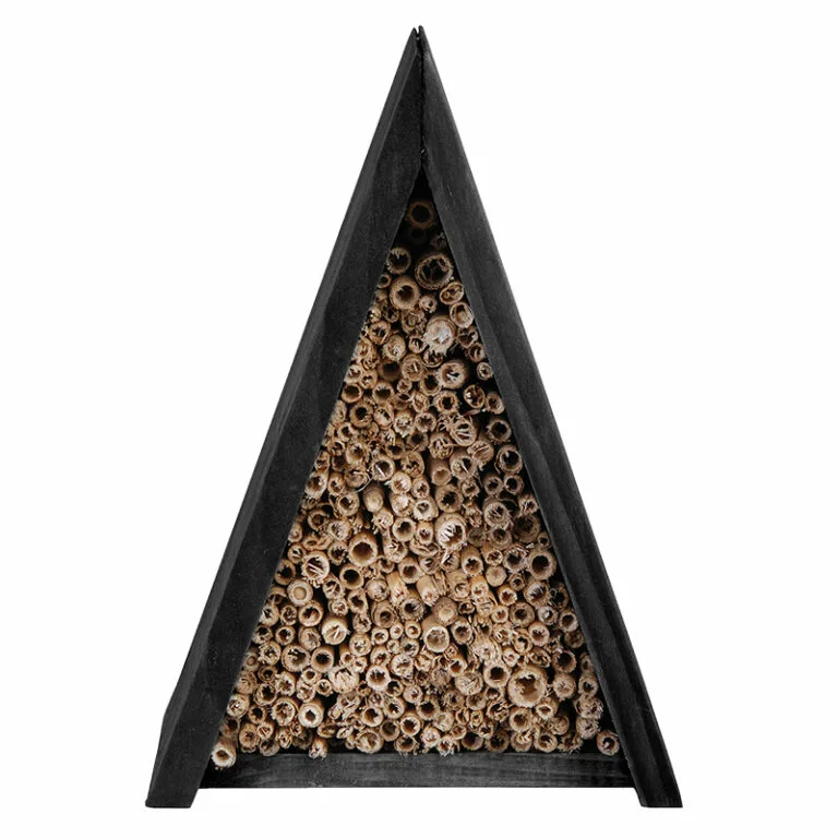 Met dit bijenhuis trek je diverse bijen aan in de tuin die helpen bij de bevruchting van bloemen. Een uitstekende nestplaats voor verschillende soorten bijen. De holle bamboe stokjes wordt door een vrouwtjesbij gebruikt om verschillende cellen te maken, elk met een ei, wat stuifmeel en nectar voor de larven. Hang dit metselbijen hotel met de opening naar het zuiden op een zonnige plek.
