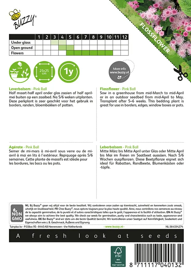 Half maart-half april onder glas zaaien of half april-mei buiten op een zaaibed. Na 5/6 weken uitplanten. Deze perkplant is zeer geschikt voor het gebruik in_x000D_