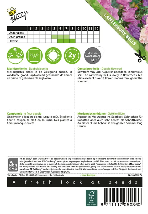 Mei-augustus direct in de vollegrond zaaien, in voedzame grond. Rijkbloeiend gedurende de zomer en prima te gebruiken als snijbloem.