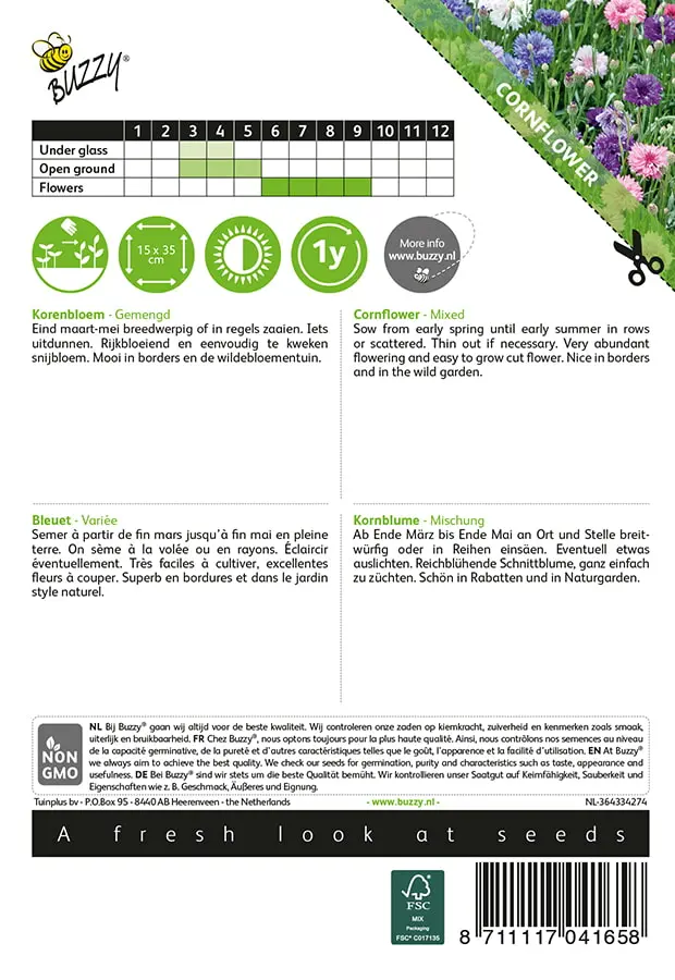 Eind maart-mei breedwerpig of in regels zaaien. Iets uitdunnen. Rijkbloeiend en eenvoudig te kweken snijbloem. Mooi in borders en de wildebloementuin._x000D_