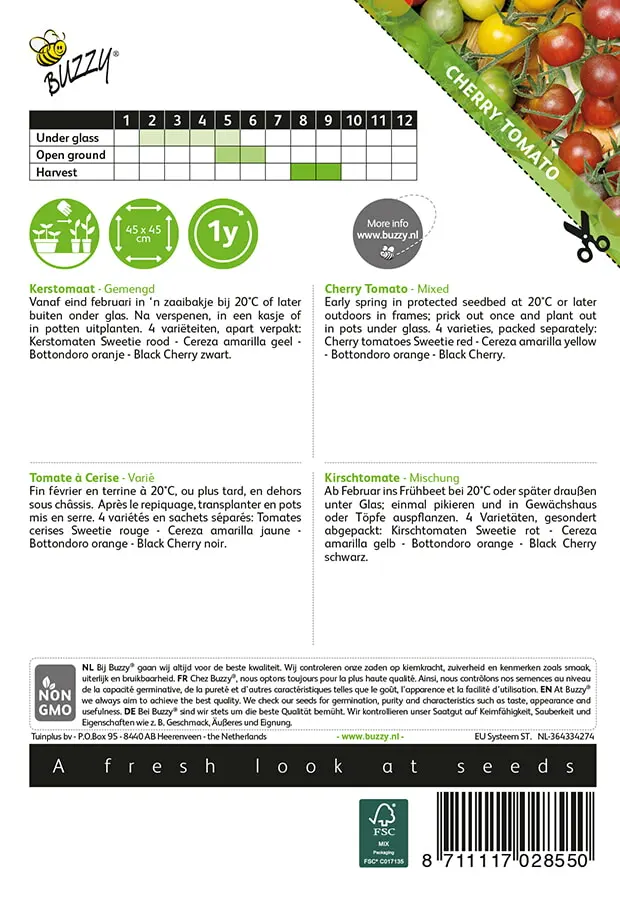 Kerstomaten Sweetie rood - Cereza amarilla geel - Bottondoro oranje - Black_x000D_