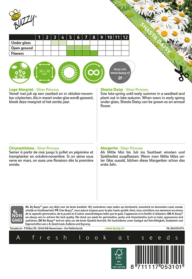 maart onder glas wordt gezaaid, bloeit deze margriet al het eerste jaar.
