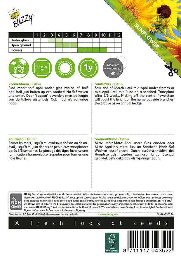 Eind maart-half april onder glas zaaien of half april-half juni buiten op een zaaibed. Na 5/6 weken uitplanten. Door ‘toppen’ bevordert men de lengte_x000D_