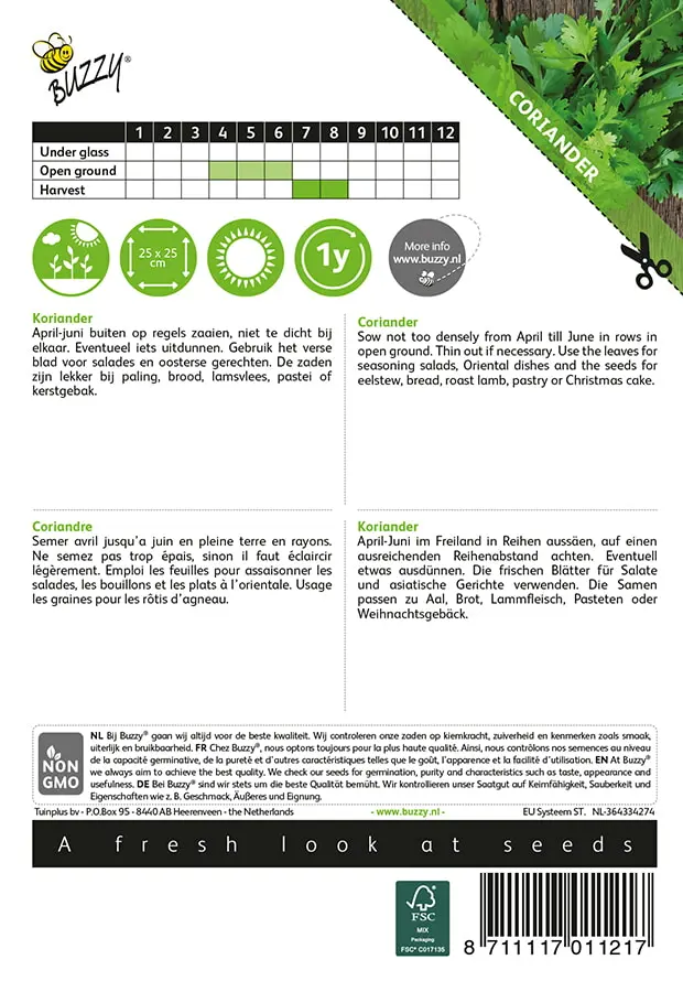 uitdunnen! Gebruik: vers blad voor salades en oosterse gerechten; de zaden_x000D_