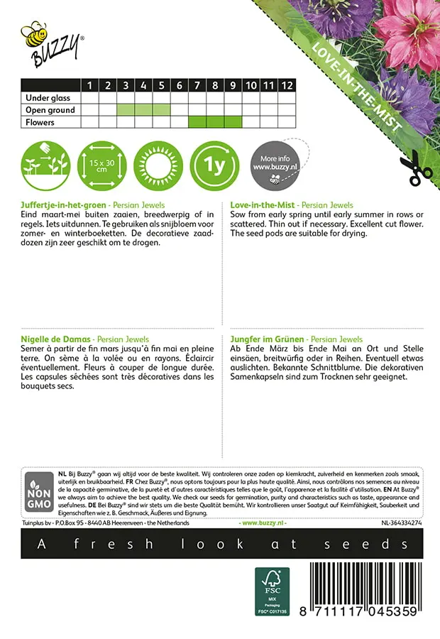Eind maart-mei buiten zaaien, breedwerpig of in regels. Iets uitdunnen. Te gebruiken als snijbloem voor zomer- en winterboeketten. De decoratieve zaaddozen zijn zeer geschikt om te drogen.
