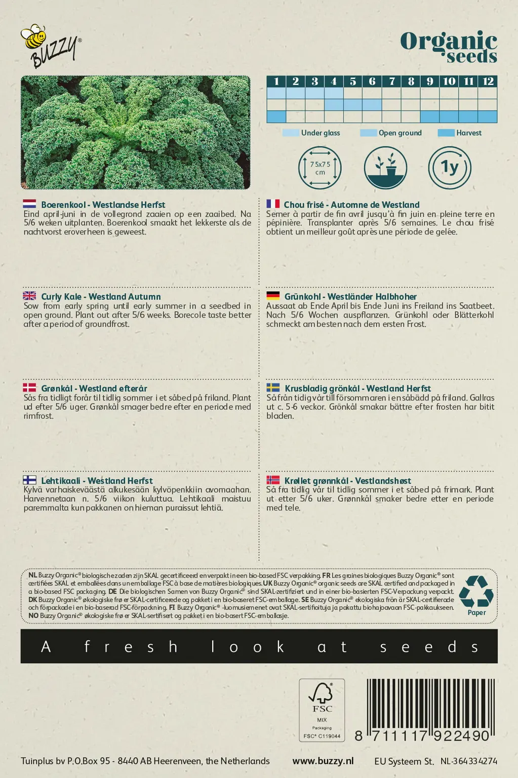 Eind april-juni in de vollegrond zaaien op een zaaibed. Na 5/6 weken uitplanten. Boerenkool smaakt het lekkerste als de nachtvorst eroverheen is geweest.