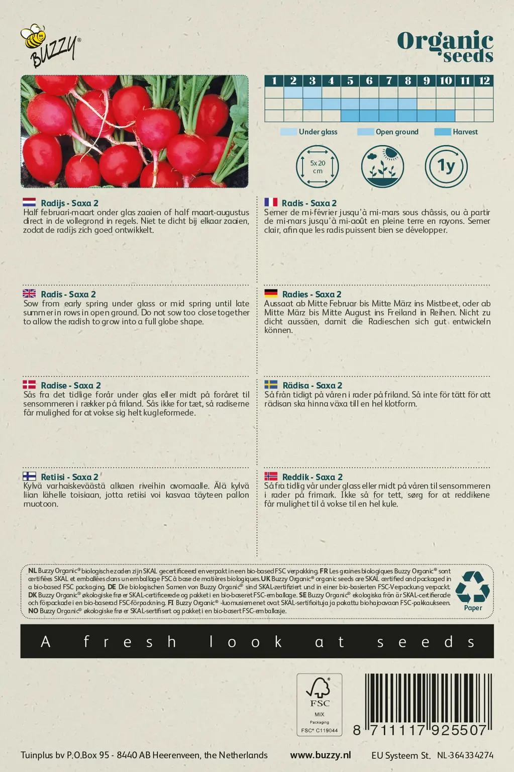 Half februari-maart onder glas zaaien of half maart-augustus direct in de vollegrond in regels. Niet te dicht bij elkaar zaaien, zodat de radijs zich goed ontwikkelt.