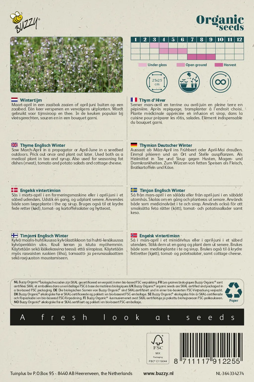 Maart-april in een zaaibak zaaien of april-juni buiten op een zaaibed. Eén keer verspenen en vervolgens uitplanten. Wordt gebruikt voor tijmsiroop en thee. In de keuken populair bij vleesgerechten, sauzen en in een bouquet garni.