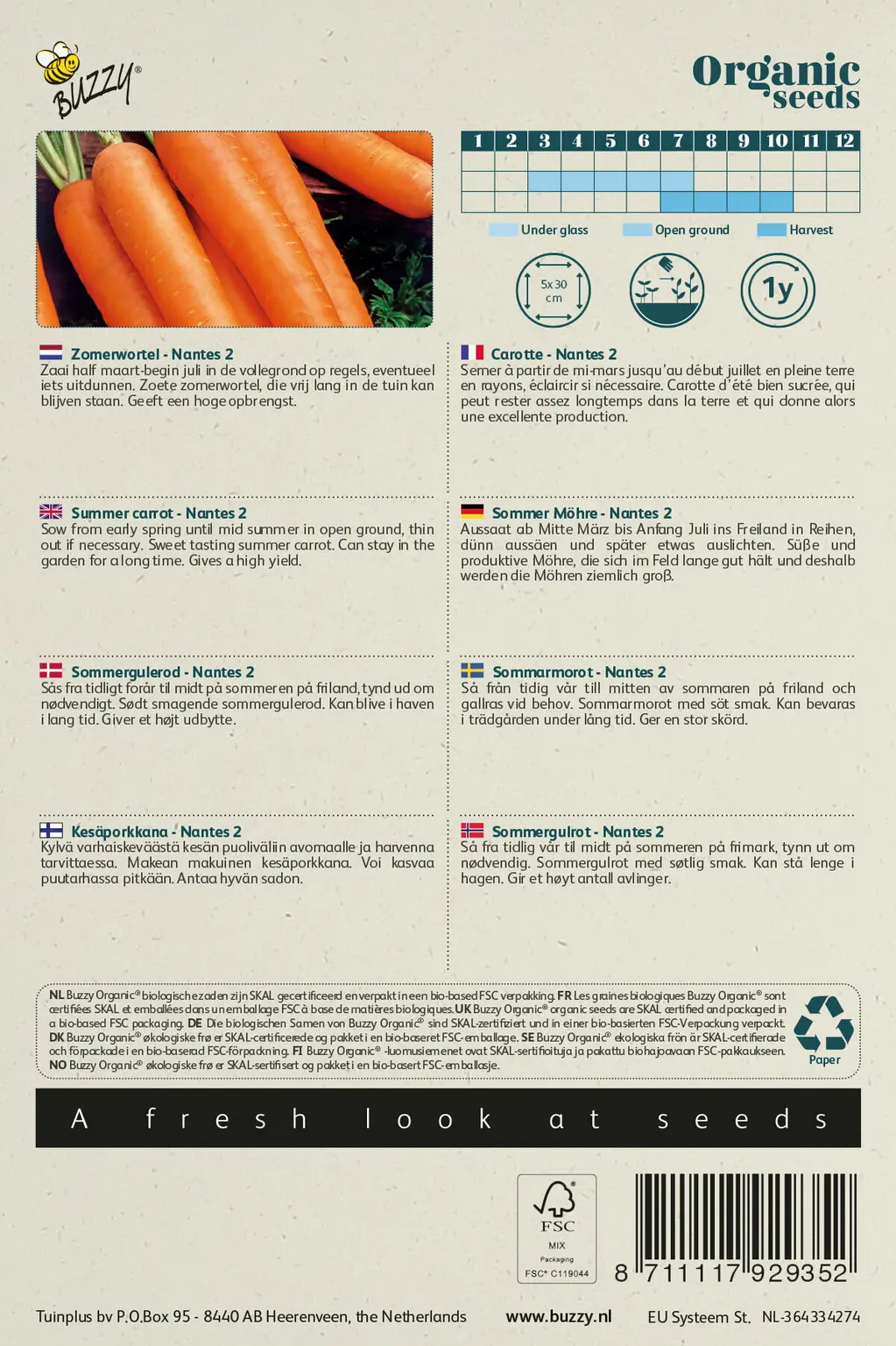 Zaai half maart-begin juli in de vollegrond op regels, eventueel iets uitdunnen. Zoete zomerwortel, die vrij lang in de tuin kan blijven staan. Geeft een hoge opbrengst.