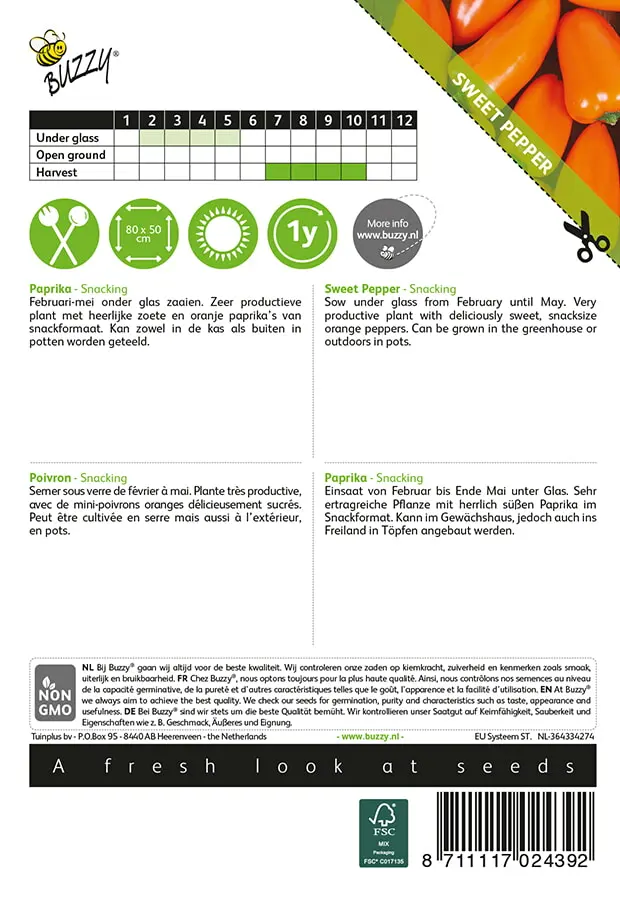 heerlijk zoete oranje paprika’s van snack formaat. Kan in de kas maar ook_x000D_