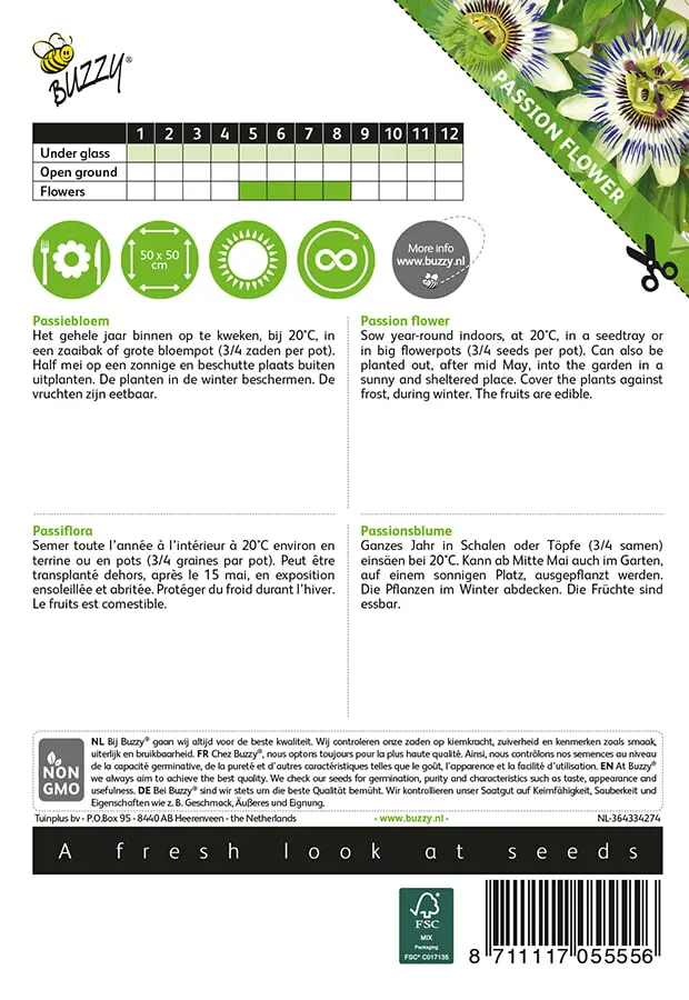 bloempot (3/4 zaden per pot). Half mei op een zonnige en beschutte plaats_x000D_