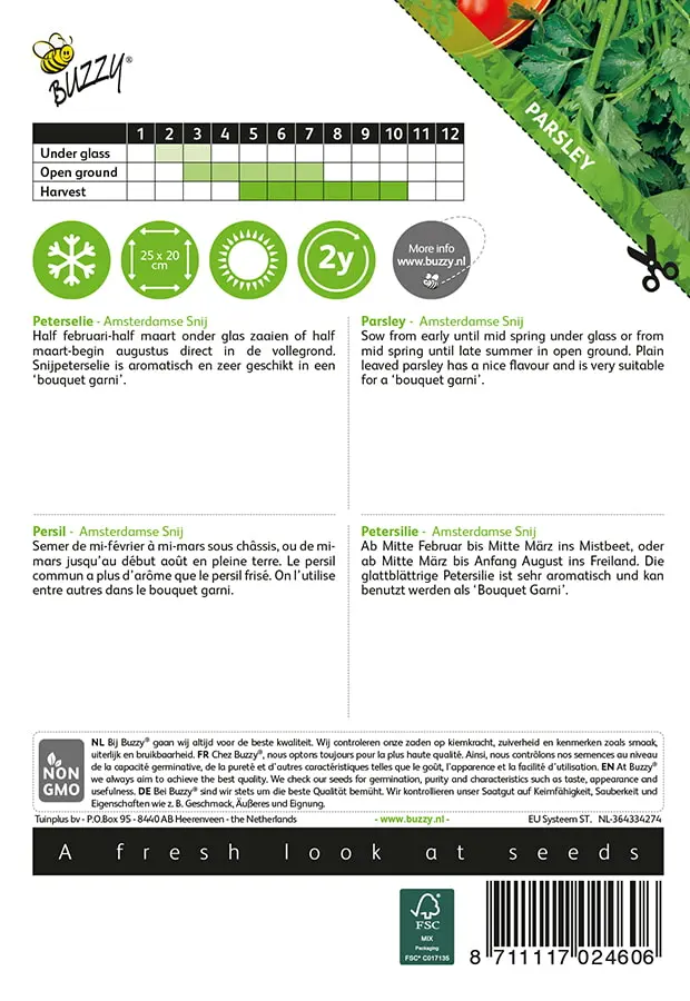 augustus in de vollegrond. Snijpeterselie is aromatischer dan de ‘gekrulde’ en_x000D_