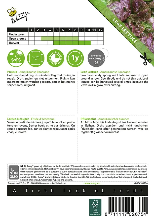 Een pluksla met rood-groen lichtgekroesd blad