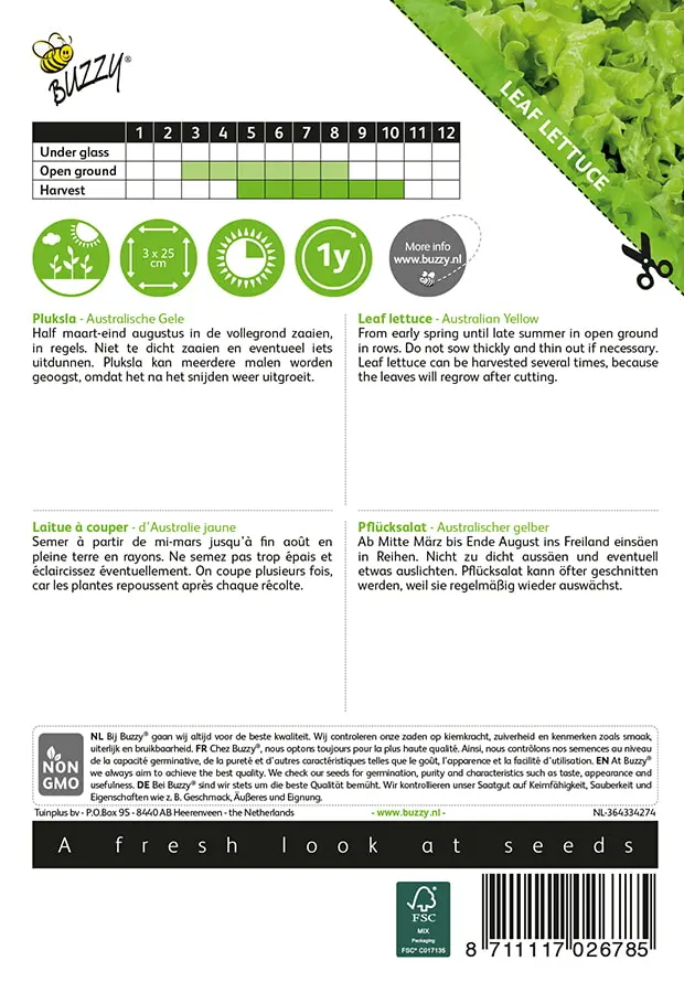 zaaien en eventueel iets uitdunnen. Pluksla kan meerdere malen worden_x000D_