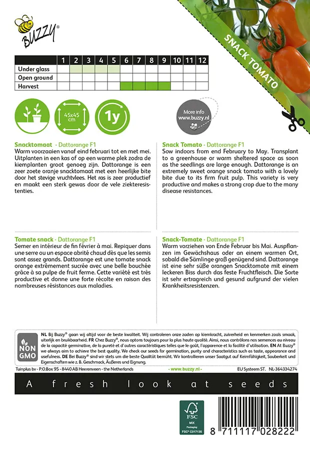 Warm voorzaaien vanaf eind februari tot en met mei. Uitplanten in een kas of op een warme plek zodra de kiemplanten groot genoeg zijn. Dattorange is een_x000D_