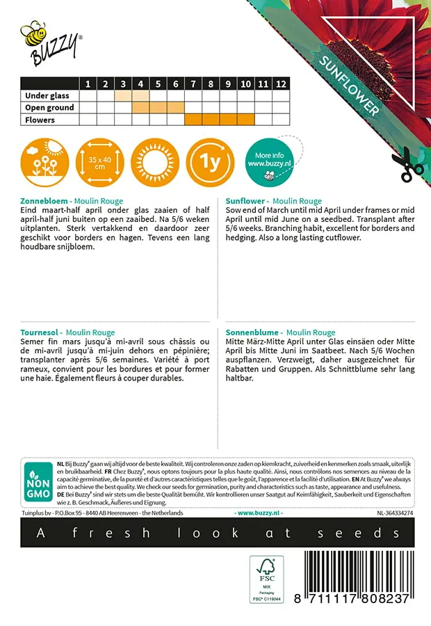 Eind maart-half april onder glas zaaien of half april-half juni buiten op een zaaibed. Na 5/6 weken uitplanten. _x000D_