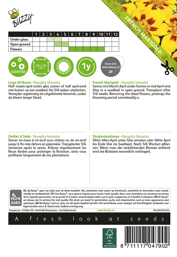Half maart-april onder glas zaaien of half april-eind mei buiten op een zaaibed. Na 5/6 weken uitplanten. Verwijder regelmatig de uitgebloeide bloemen, zodat de bloem langer bloeit.