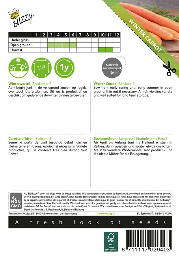 April-begin juni in de vollegrond zaaien op regels, eventueel iets uitdunnen._x000D_
