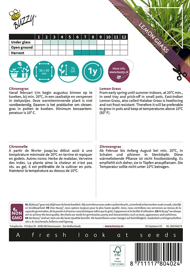 vorst bestendig. Daarom is het praktischer om citroengras in potten te kweken. Minimum bewaar temperatuur is 10°C.