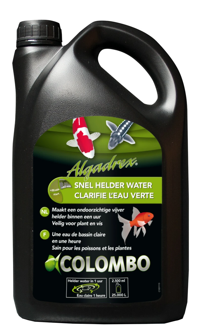 Algadrex maakt troebele ondoorzichte vijvers snel helder, de verontreinigingen klonteren samen en drijven aan het wateroppervlak, zinken naar de bodem of komen in het filter terecht.