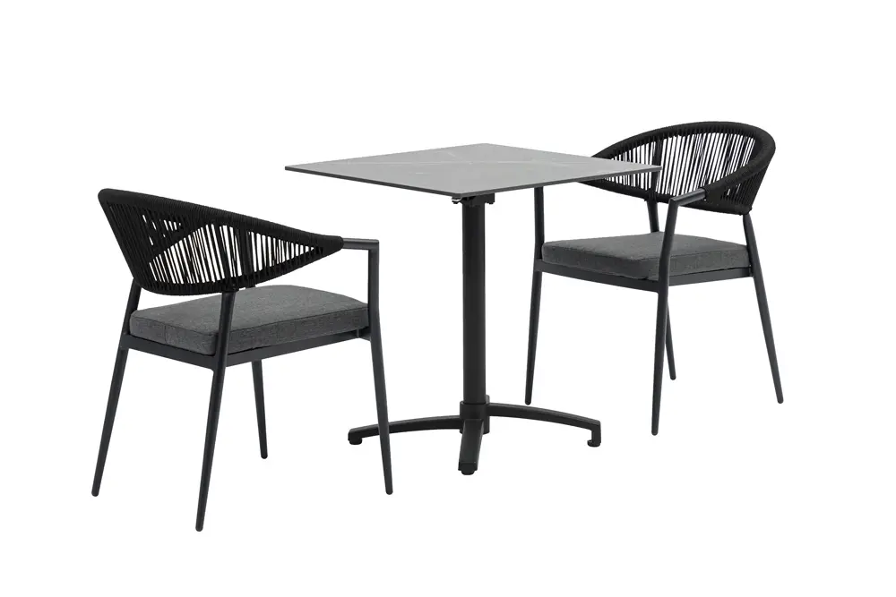 Stap binnen in de wereld van de buitenmeubel met bijvoorbeeld de Malmö bistrotafel 70 x 70 cm zwart inklapbaar. Deze tafel nodigt je uit om te genieten van ontspannen momenten ontspanning in je buitenruimte. Bijzonder aan deze bistrotafel is dat hij voorzien is van een tafelblad gemaakt van keramiek.