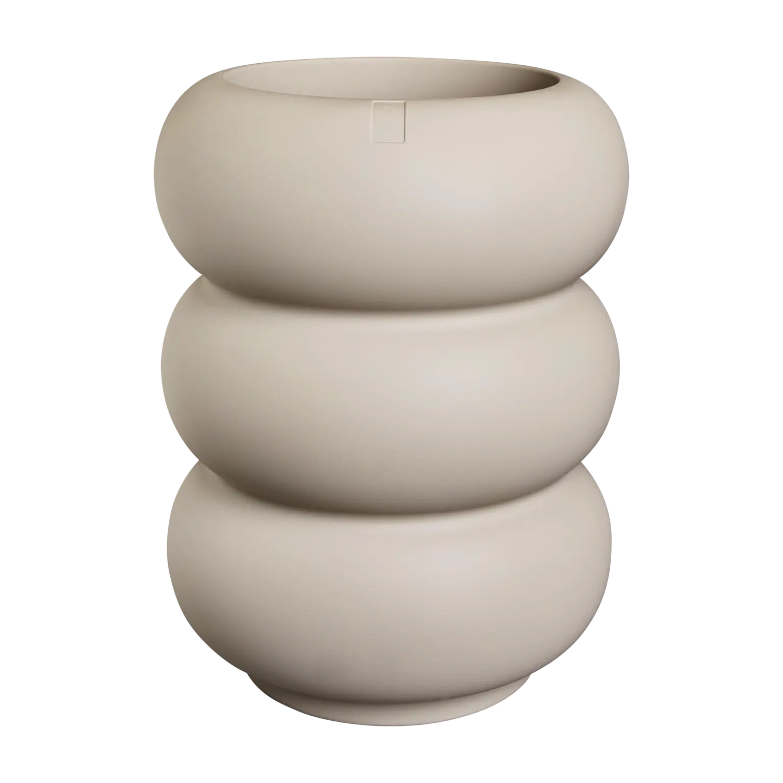 Op zoek naar een toffe bloempot voor binnen én buiten? De Amber Rol balanced beige heeft zachte rondingen en warme kleuren die in elke ruimte passen. De verhoogde bodem zorgt ervoor dat je niet de hele pot met aarde hoeft te vullen. Makkelijk én handig! Wil je hem buiten gebruiken? Boor dan een gaatje op de markering binnenin. Zo loopt overtollig water weg en blijven je planten gezond. Let op: eenmaal geboord, is de pot alleen nog voor buitengebruik.