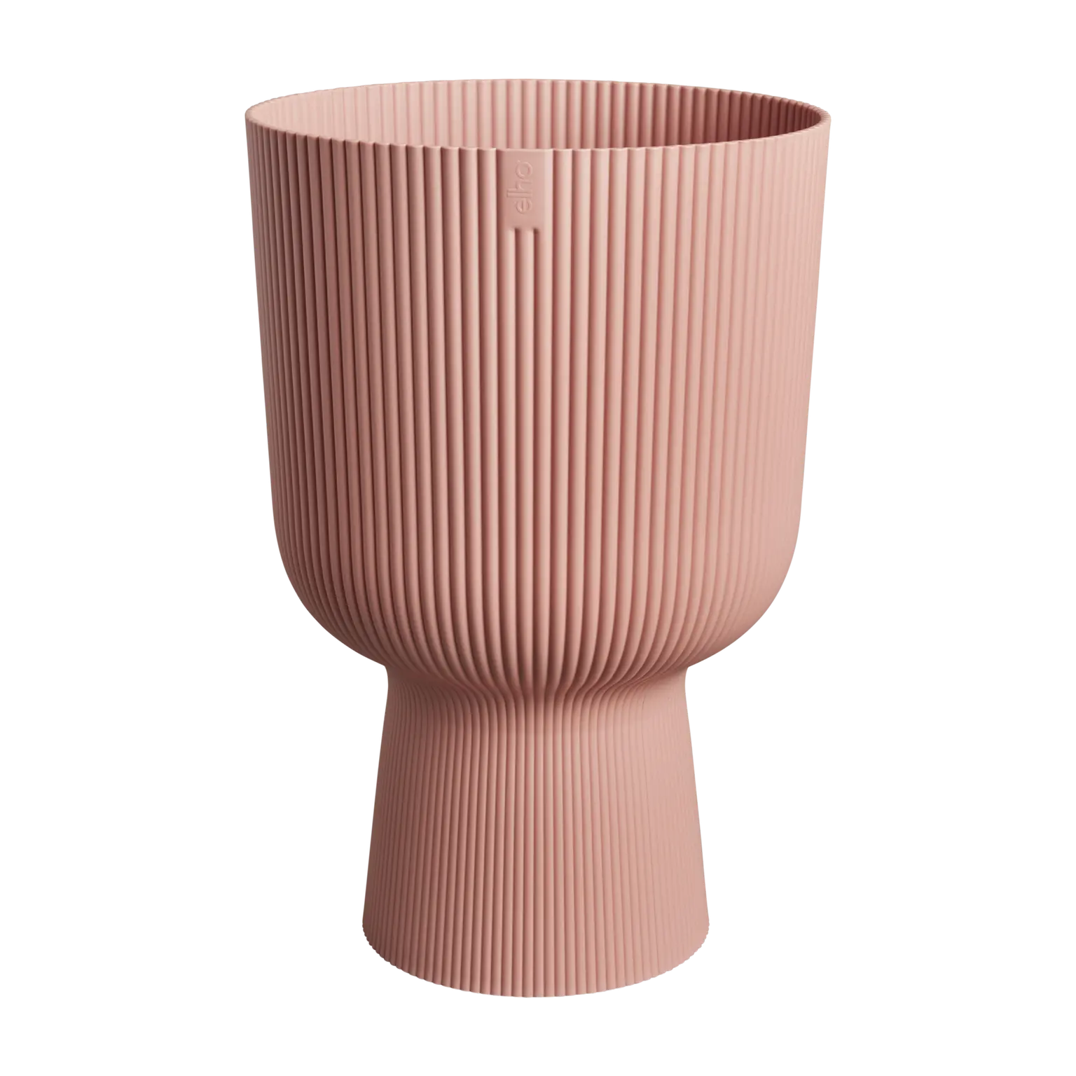 De Elho Vibes Fold Coupe Roze 30 x 45 cm is een grote langwerpige bloempot voor binnen. De pot heeft een diameter van circa 30 cm en een hoogte van ongeveer 45 cm, waardoor hij geschikt is voor grote kamerplanten, vetplanten of kruiden. Het ribpatroon maakt deze pot duidelijk herkenbaar uit de Vibes Fold serie.