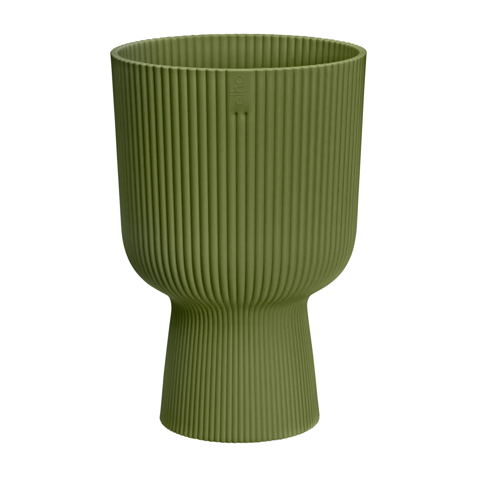 De Elho Vibes Fold Coupe Groen 14 x 21 cm is een langwerpige bloempot voor binnen. De pot heeft een diameter van circa 14 cm en een hoogte van ongeveer 21 cm, waardoor hij geschikt is voor kleine tot middelgrote kamerplanten, kruiden of vetplanten. Het ribpatroon maakt deze pot duidelijk herkenbaar uit de Vibes Fold serie.