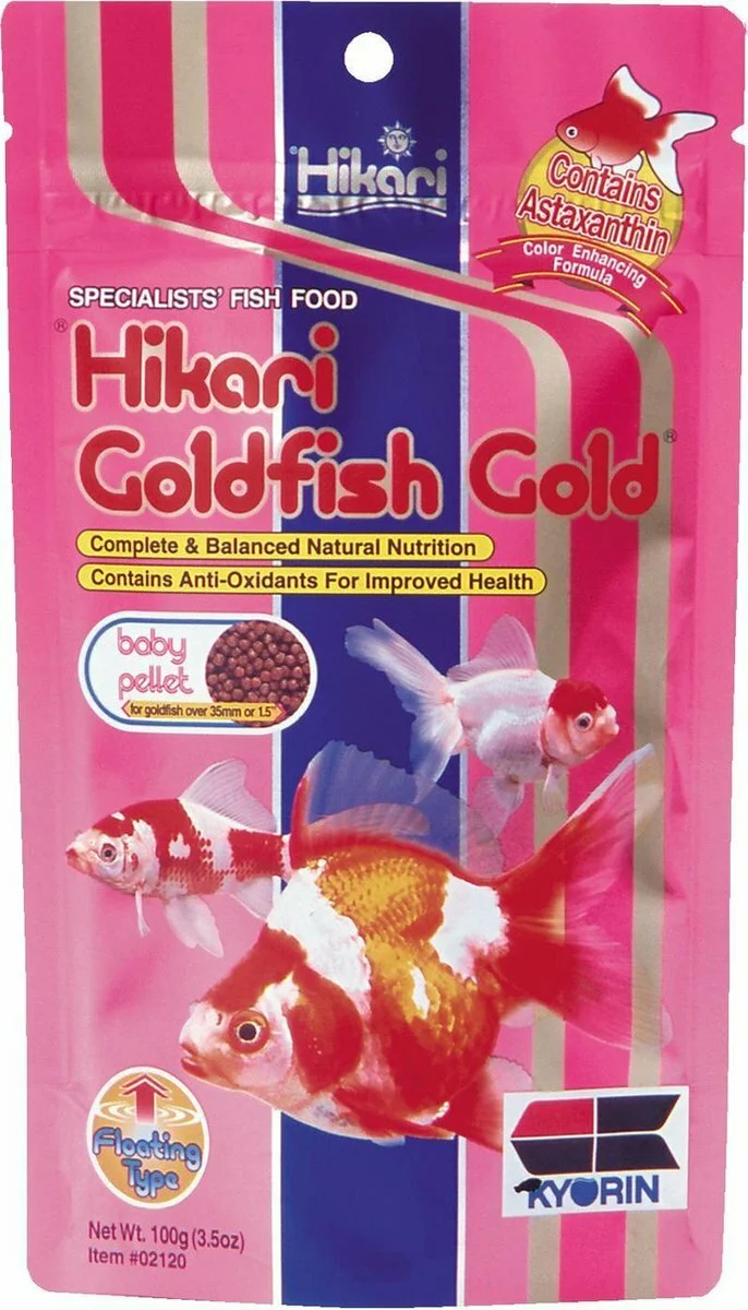 Hikari Goldfish Gold Baby voor schitterende goudvissen. Dit gemakkelijk verteerbare voer is rijk aan astaxanthine waardoor de vissen een mooie kleur kunnen ontwikkelen. De ontstekingsremmende eigenschappen van deze carotenoïde zorgt voor een gezond immuunsysteem.