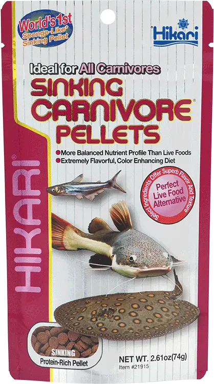 Hikari Sinking Carnivore Pellets is ontwikkeld na uitgebreide studies naar geur, smaak en het gezichtsvermogen van van de kleinere vleeseters welke van de bodem eten. Dit calorierijke voer bevat alle noodzakelijke eiwitten, koolhydraten, vetten, vitamines en mineralen voor een gezonde groei en lichaamsbouw.