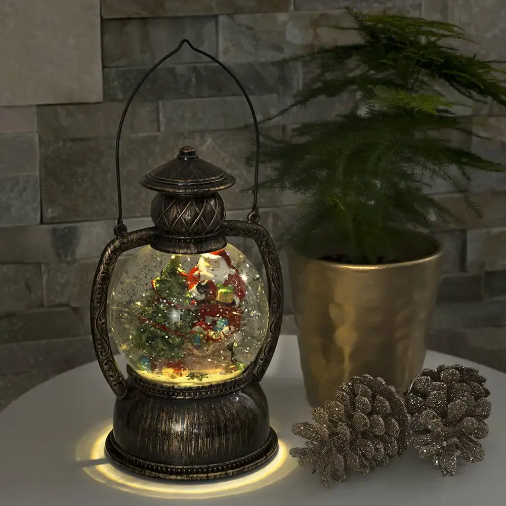 LED Sneeuwlantaarn rond klassiek met de kerstman