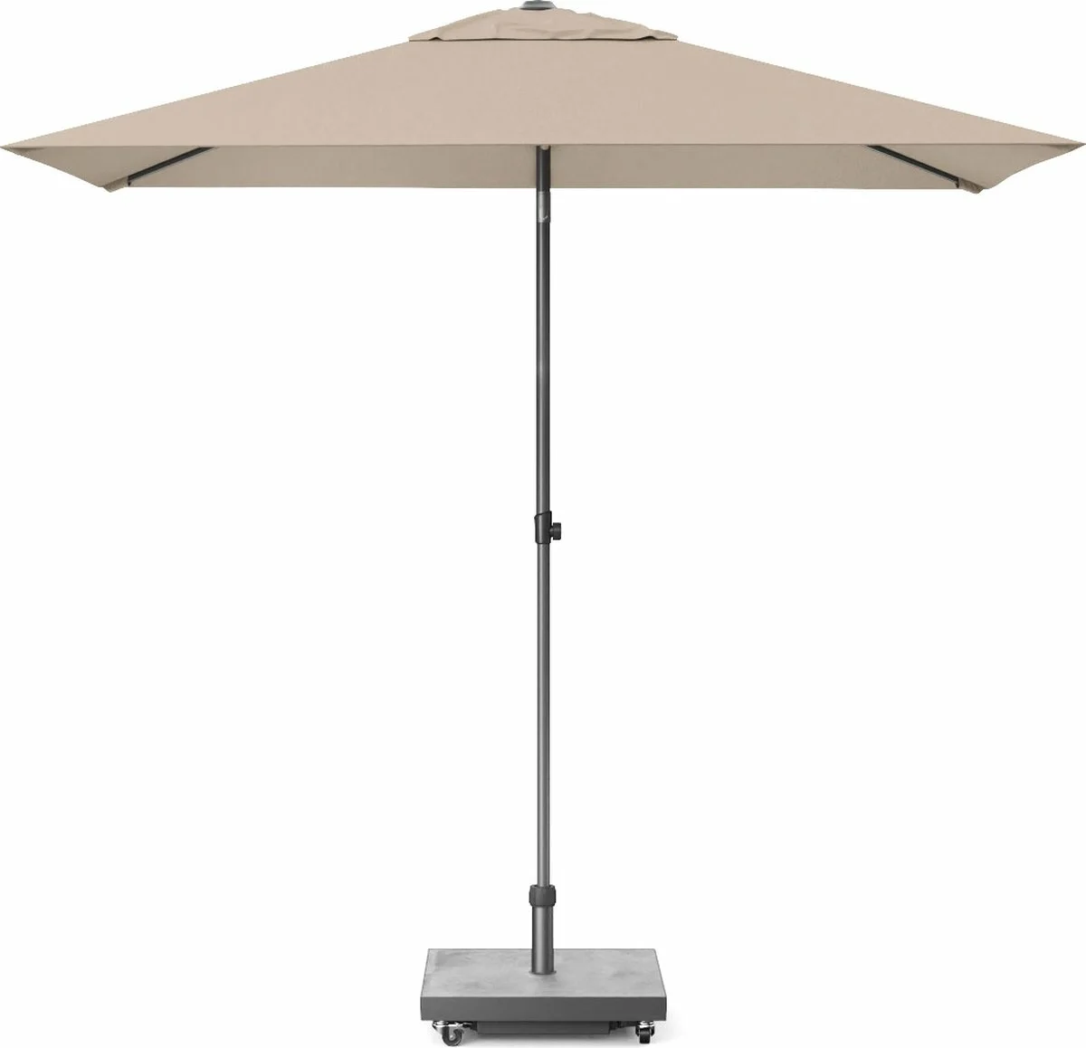 Breng stijl en comfort naar je tuin met de Platinum Sun & Shade middenstok parasol Lisboa 210x150 in het moderne taupe. Deze parasol biedt niet alleen bescherming tegen de zon, maar voegt ook een chique, eigentijdse uitstraling toe aan elke buitenruimte.