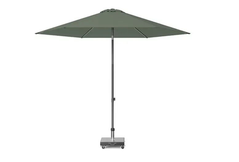 Deze stokparasol komt uit de serie Lisboa van het merk Platinum. Deze parasols bieden met een diameter van 300 cm voldoende schaduw voor uw terras of tuinmeubilair. Het robuuste frame is vervaardigd uit hoogwaardig staal en is voorzien van een antracietkleurige coating voor extra duurzaamheid en stijl. Het doek van de parasol is gemaakt van 220 gram polyester en biedt 96% UV bescherming. Het doek is daarnaast voorzien van een waterafstotende coating en doekspanners. De parasol is eenvoudig open en dicht te schuiven met behulp van het handige push-up doordruksysteem. Daarnaast is deze makkelijk te plaatsen, te verplaatsen, te kantelen en in hoogte te verstellen om zo de juiste hoeveelheid schaduw te creëren. Wij adviseren u om de parasol op een 40kg parasolvoet te plaatsen. De parasolvoet wordt niet meegeleverd. Dankzij de stevige, deelbare mast is de parasol eenvoudig op te bergen. Om de parasol als nieuw te houden, kunt u deze afdekken met een AeroCover parasolhoes wanneer u de parasol langere tijd niet gebruikt. De Platinum Lisboa stokparasol is een betrouwbare en stijlvolle keuze voor uw buitenruimte.