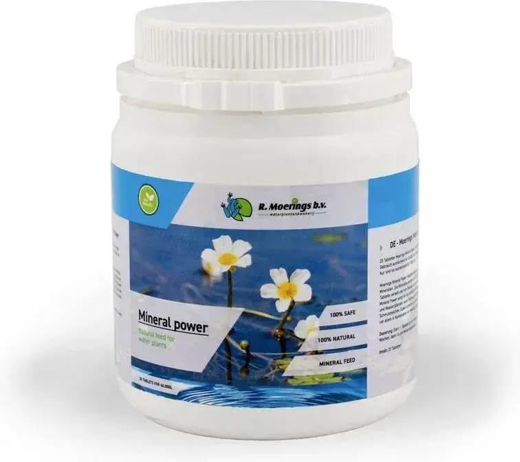 Moerings Mineral Power tabletten bevatten 63 verschillende soorten mineralen die, dankzij het bruiseffect, gelijkmatig in het water worden verdeeld. Ze zorgen voor een perfecte groei van waterplanten, binden zweefvuil en stimuleren de bacteriële ontwikkeling, vooral in combinatie met Moerings Pond Pro.