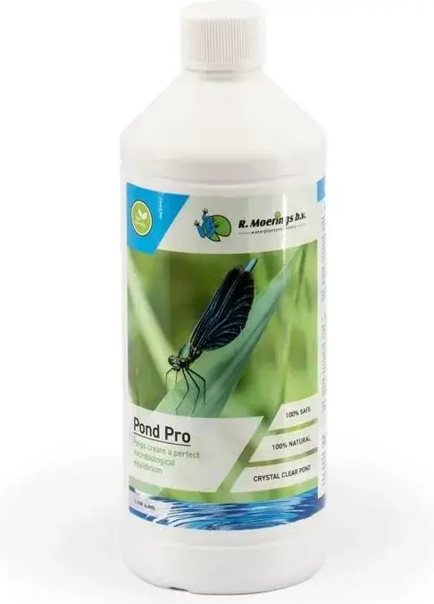 Moerings Pond Pro is een krachtig probiotisch concentraat dat goede bacteriën introduceert in het vijverwater. Deze bacteriën breken voedingsstoffen af die anders ziektekiemen en algen zouden voeden, wat resulteert in een stabiele en gezonde microflora. Het product is volledig biologisch afbreekbaar en veilig voor mens en dier.