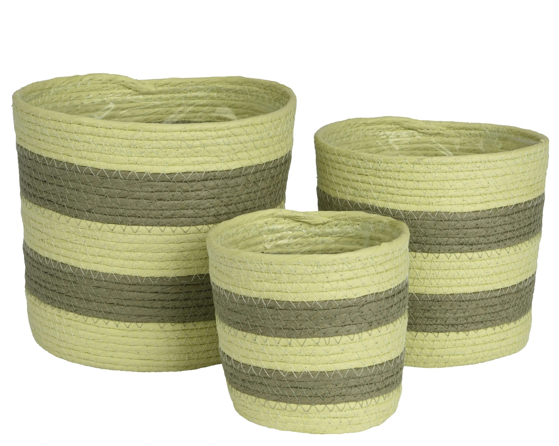 Groen potten set gemaakt van papier touw, rond, 21 cm